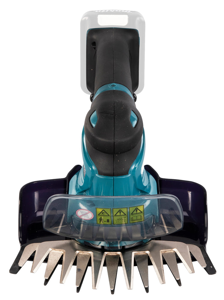 Leichte und handliche Akku-Gras-/Strauchschere.Rostfreies Scherblatt, beidseitig geschliffen.