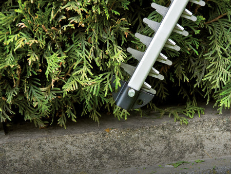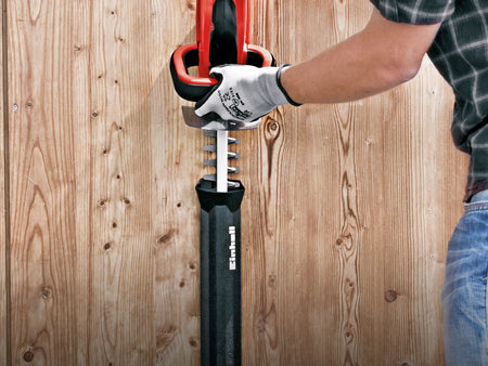 Die Akku-Heckenschere GE-CH 1846 Li ist ein leistungsstarkes Gerät, das aufgrund seines geringen Gewichts und der handlichen Größe eine besonders komfortable und stromnetzunabhängige Pflege von Hecken, Sträuchern und Büschen auf großen Grundstücken und in Schrebergärten ermöglicht. Dabei sorgt das Metallgetriebe für hohe Langlebigkeit und die aus lasergeschnittenem und diamantgeschliffenem Stahl gefertigten Messer für saubere Schnittresultate. Der integrierte Zweihand-Sicherheitsschalter bringt die Messer bei Loslassen eines Schalters in weniger als 1 Sekunde zum Stillstand. Die Messer werden durch eine Messerabdeckung aus Aluminium geschützt. Der Stoßschutz ist mit einer Bohrung für die Wandbefestigung versehen, wodurch die Heckenschere im Handumdrehen platzsparend verstaut ist. Im stabilen Köcher lässt sich die GE-CH 1846 Li sicher und bequem transportieren oder verstauen. Im Lieferumfang ist keine Batterie und Ladegerät enthalten.