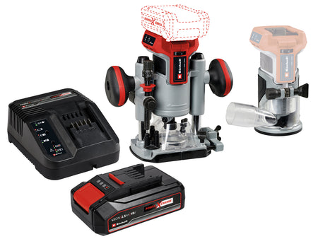 Lieferumfang: Lader, 1x 2,5Ah Akku,Parallelanschlag,Zirkelspitze,Führungsrolle und Kopierhülse,Absaugadapter passend für Einhell Nass-/Trockensauger,Aufbewahrungstasche für sauberen und sicheren Transport