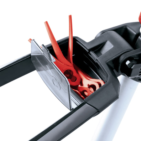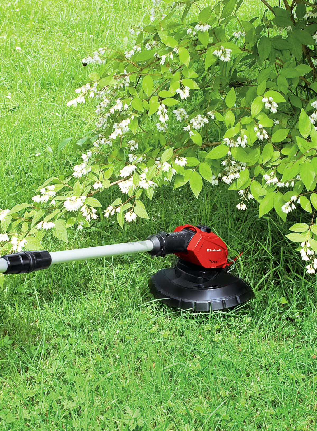 Lieferumfang: Trimmer, Schutzhaube, Zusatzhandgriff mit Ersatzmessern, Originalbetriebsanleitung, Sicherheitshinweise