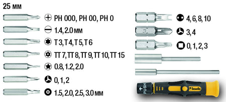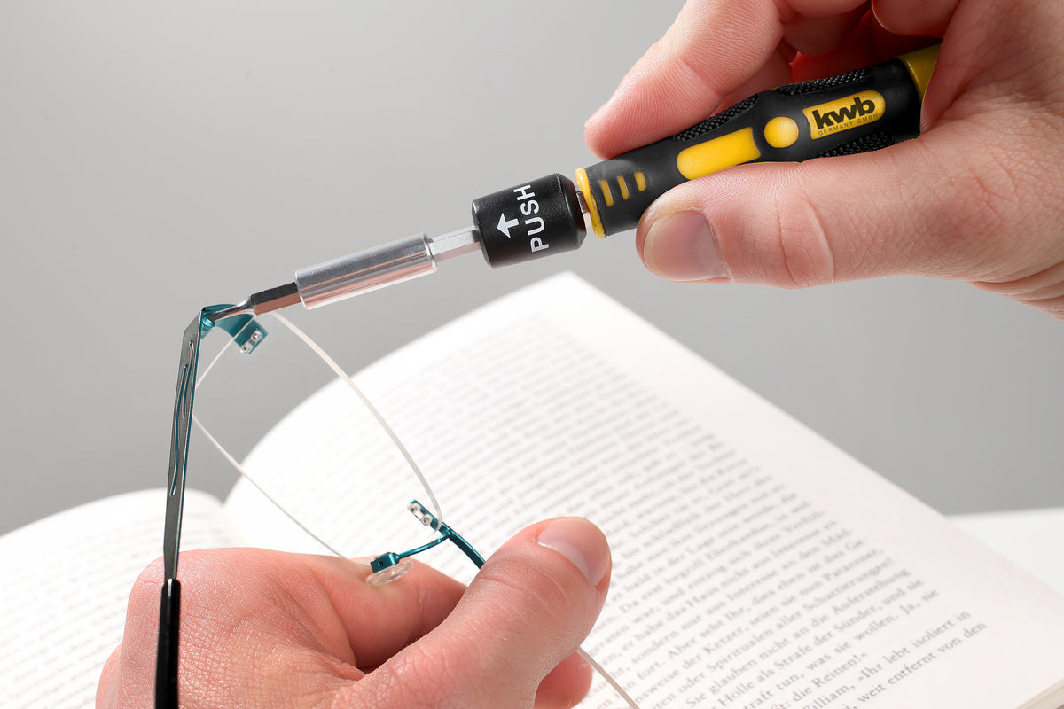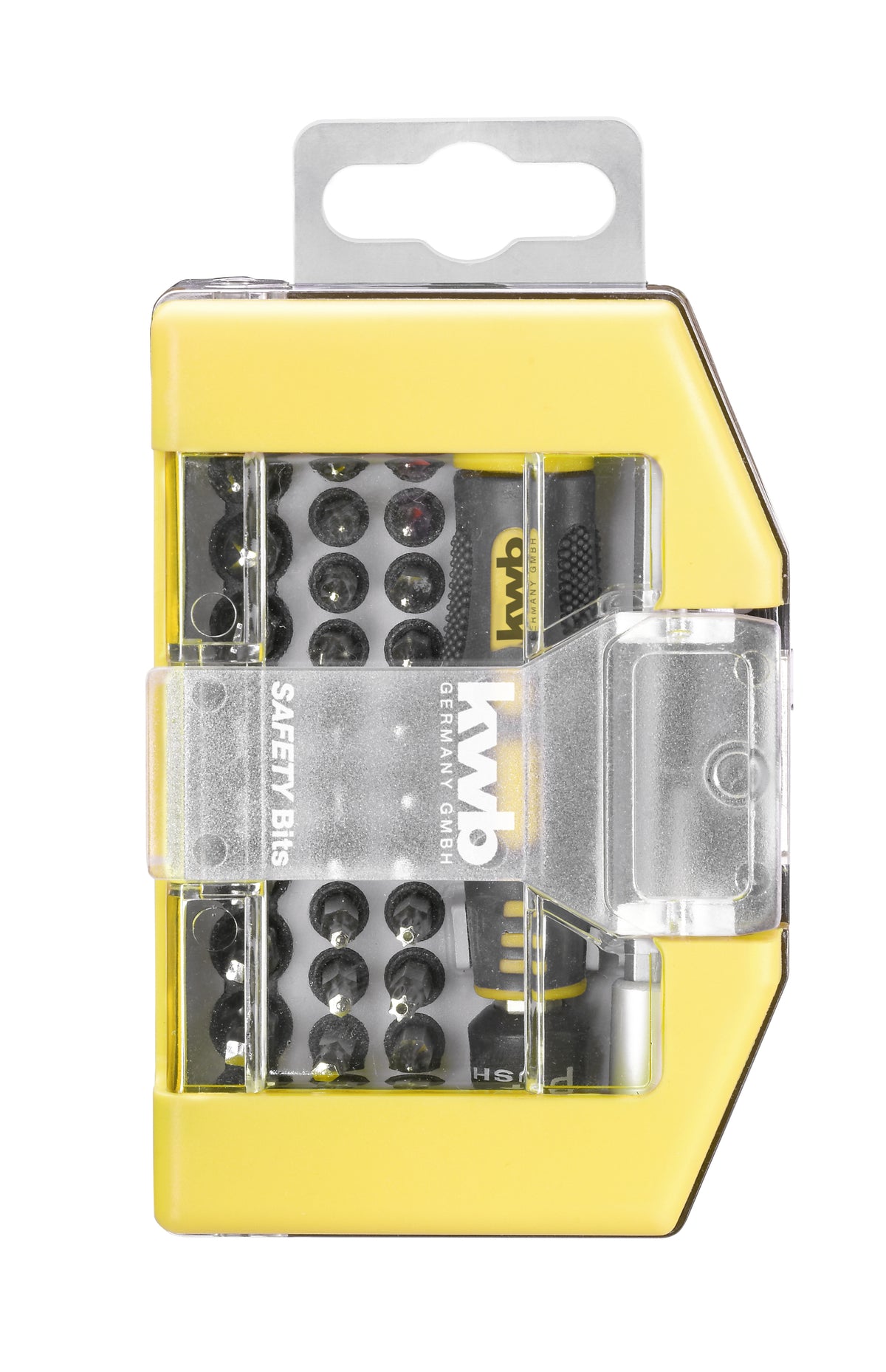 Bit-Box, 37-tlg., Bits: Industriequalität TQ 60, Antrieb 1/4" Sechskant nach ISO 1173, C 6.3, Micro-Bits: Industriequalität, TQ60, Antrieb 4 mm Sechskant, 2-K-Handgriff, alle gängigsten Bits für Sicherheitsverschraubungen bei Gerätegehäusen, Feinelektronik, Küchengeräten, Phono- und Audiogeräten, Brillen und Modellbau. Inkl. eines Adapters für Microbits für Standard Magnethalter und Akkuschrauber, Box aus stabilem Kunststoff mit praktischem Gürtelclip.