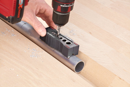 Bohr-Lehre für Eck-, Winkel-, Flächenverbindungen, Gummirutschsicherung für glatte und empfindliche Oberflächen, Bohrlehre für präzise 90° Bohrungen von 4 – 12 mm geeignet.