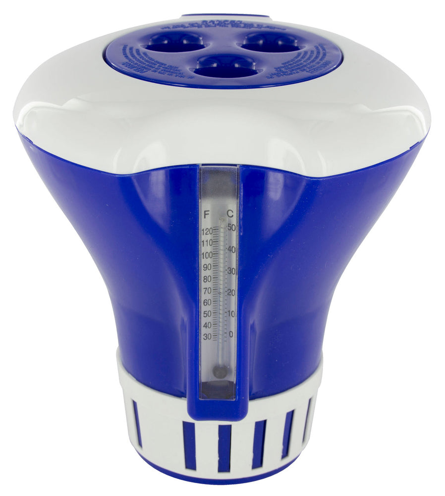 Chlordosierschwimmer mit integriertem Thermometer, für 20 - 200 g Tabletten, Verstellring zum Dosieren der Chemie