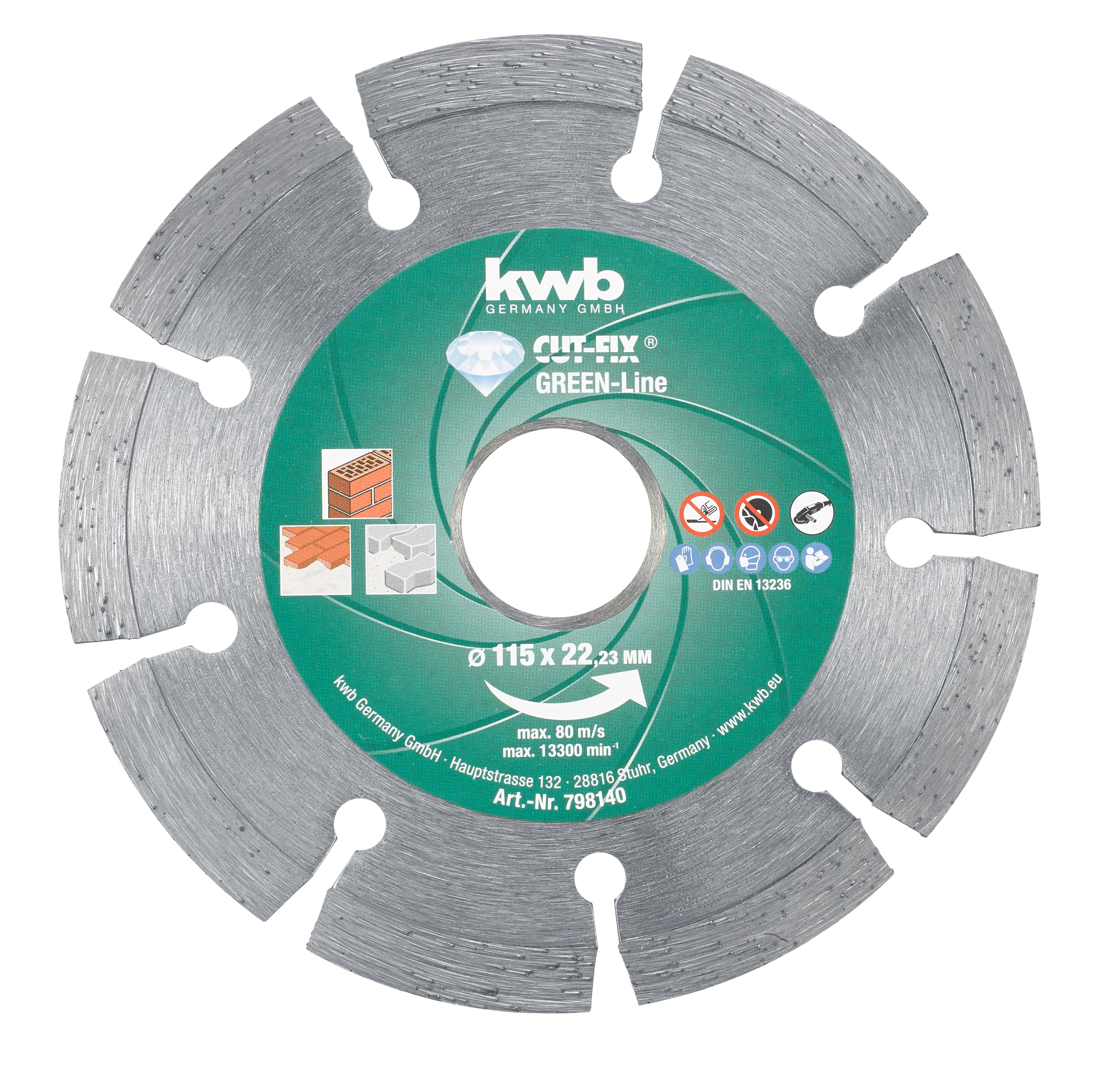 Green-Line DIAMANT Trennscheiben, segmentierter Schneidrand, Stärke 7 mm, für hohe Schneidleistung, für Ziegelsteine, Betonsteine, Klinkersteine, für alle handelsüblichen Winkelschleifer mit Umfangsgeschwindigkeit 80 m/s.