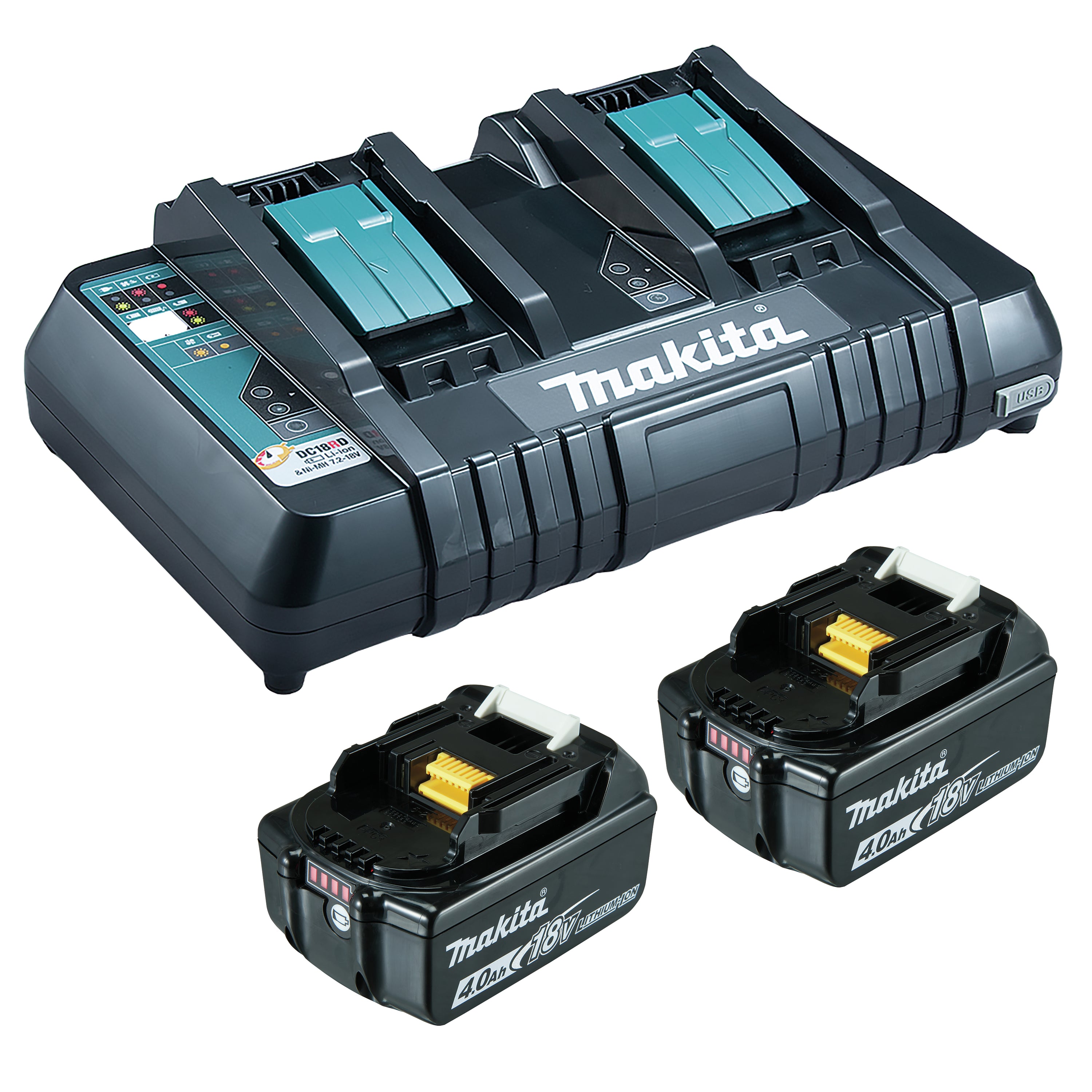 Makita Doppelladegerät Li 18V 4Ah Ink. 2 x 4,0 Ah und Ladegerät Power Source Kit