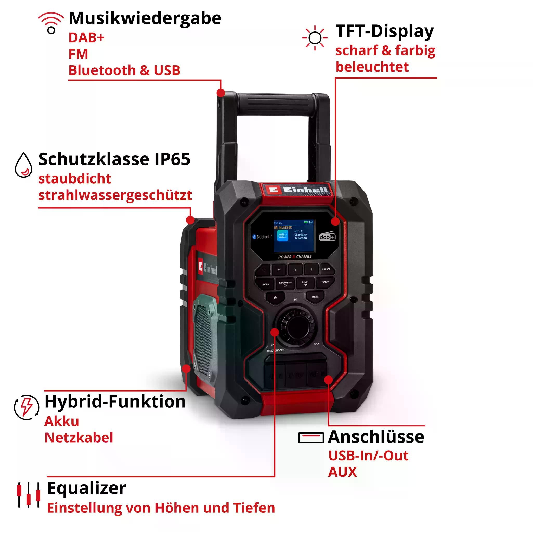 Einhell Einhell TE-CR 18 Li DAB+/FM/BT Akku-Radio (Solo, 18V, DAB+ Digitalradio, FM, Bluetooth, Power X-Change kompatibel)
