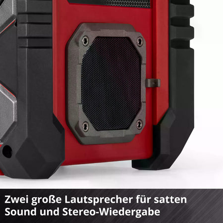 Das Einhell Akku-Radio TE-CR 18 Li DAB+/FM/BT – Solo ist der perfekte Begleiter für Baustelle, Werkstatt und Freizeit. Mit DAB+ Digitalradio und klassischem FM-Tuner genießen Sie glasklaren Empfang und eine große Senderauswahl. Dank Bluetooth-Funktion können Sie Musik kabellos vom Smartphone streamen. Das robuste Gehäuse und der Tragegriff sorgen für optimale Mobilität. Als Teil der Power X-Change Familie ist das Radio mit allen 18V Akkus von Einhell kompatibel. Akku und Ladegerät sind nicht enthalten und separat erhältlich.