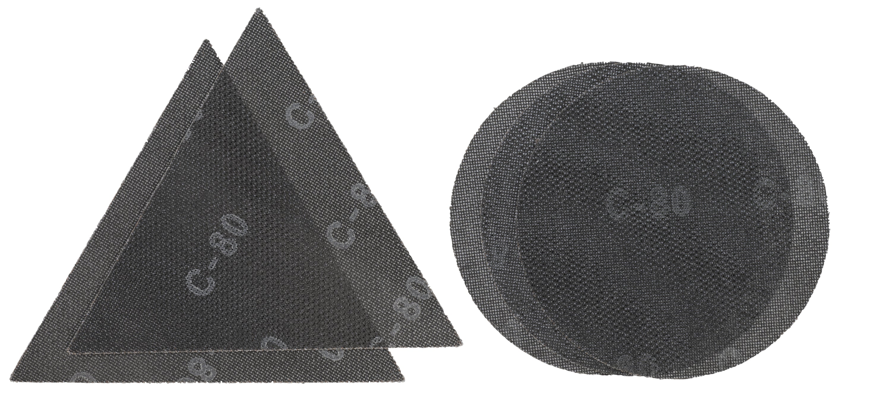 Set Bestehend Aus: - 2x runde Schleifgitter mit P80 Körnung - 1x rundes Schleifgitter mit P120 Körnung - 2x dreieckige Schleifgitter in der Körnung P80