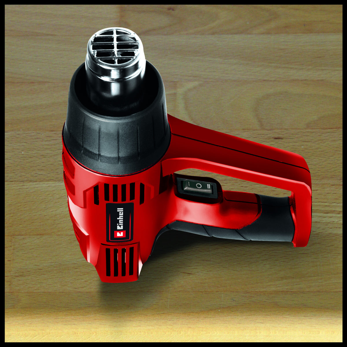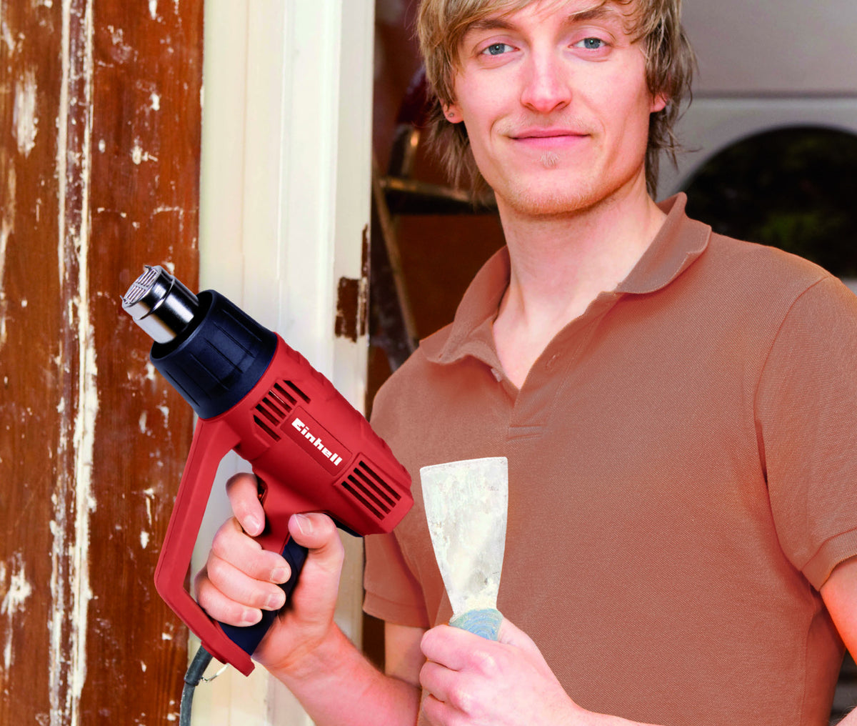 Die Heißluftpistole TH-HA 2000/1 ist ein leistungsstarkes Gerät, das Heimwerkern beim Ablösen alter Lacke und Farben, bei Lötarbeiten, beim Einpassen von Kunststoffrohren und vielem mehr sehr gute Dienste leistet. Die Leistung ist zweistufig einstellbar, um Temperatur und Luftmenge an die jeweiligen Anforderungen anzupassen. Um die Heißluftpistole TH-HA 2000/1 optimal für die jeweilige Aufgabe einzurichten, sind vier verschiedene Düsenaufsätze bereits im Lieferumfang enthalten. Zudem lassen sich mit dem ebenfalls mitgelieferten Farbkratzer Oberflächen fachgerecht von Lack- und Farbresten befreien. Für maximale Sicherheit sorgen der integrierte Überhitzungsschutz und der stabile Stand, so dass die Heißluftpistole auch stationär einsetzbar ist.