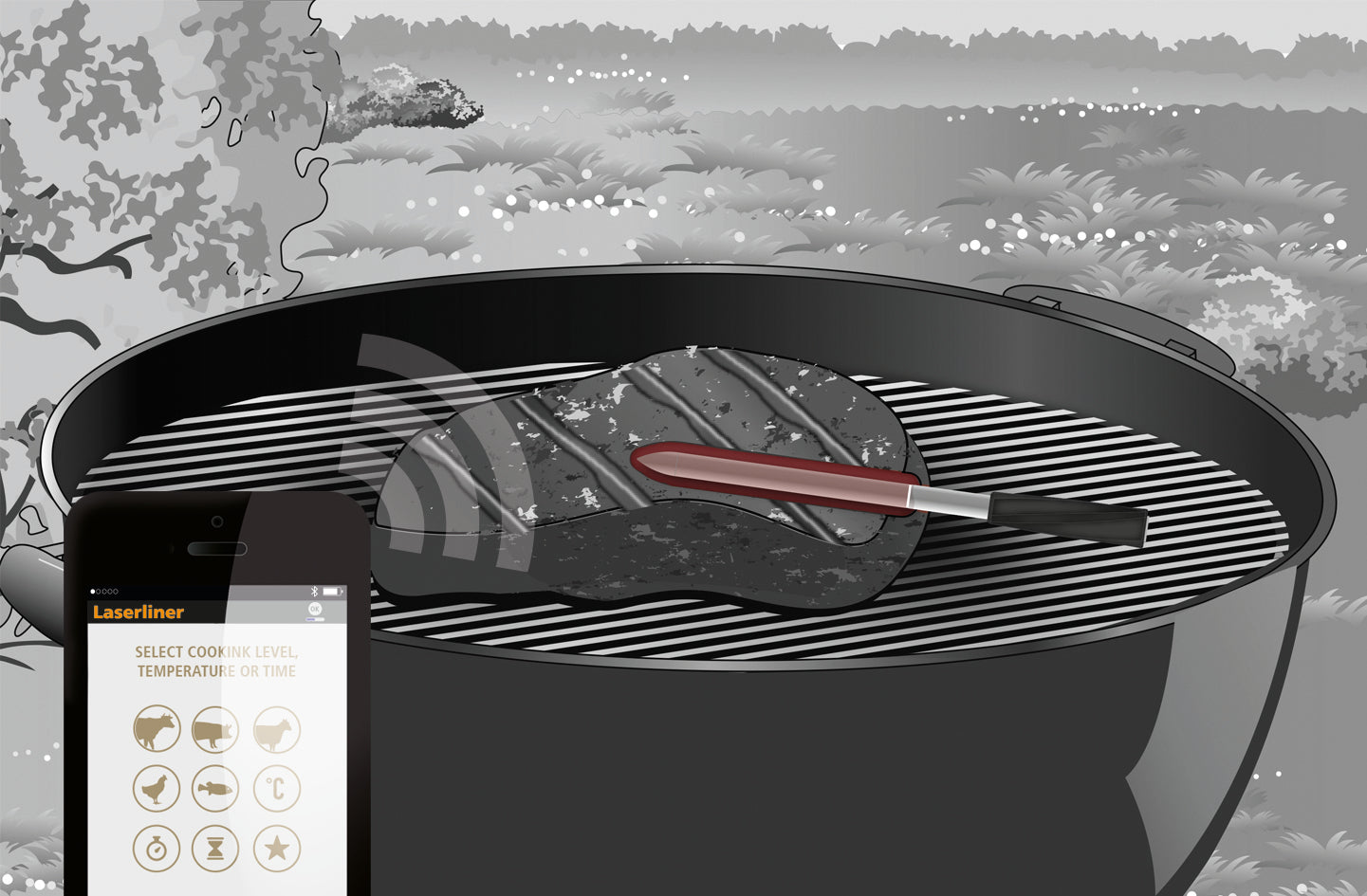 LASERLINER Kabelloses Grill-Thermometer ThermoControl Air
