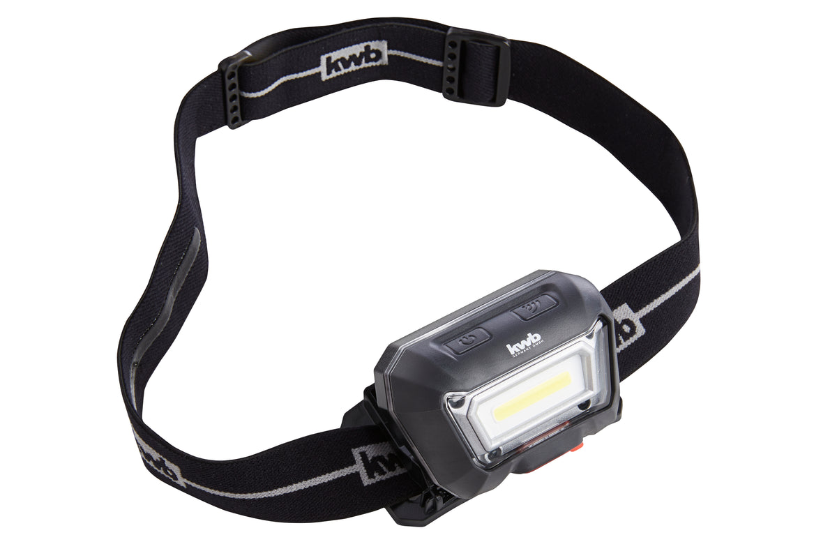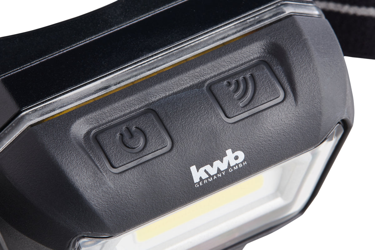 Die COB-Leuchtdiode der Kopfleuchte hat maximal 294 Lumen und zwei Leuchtmodi für die optimale Auswahl der Helligkeit. Die Lampe erzeugt ein helles Flächenlicht mit einem einheitlichen Lichtkegel ohne Hotspotbildung und erfüllt die Leuchtspezifikationen nach ANSI FL. Um mit schmutzigen Händen oder mit Handschuhen die kwb Kopfleuchte 3W ein- und auszuschalten, ist die Lampe mit einem zusätzlich schaltbaren Bewegungssensor ausgerüstet.
