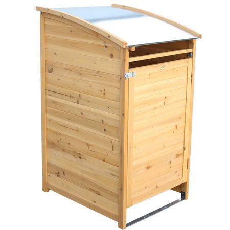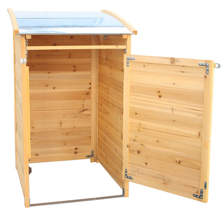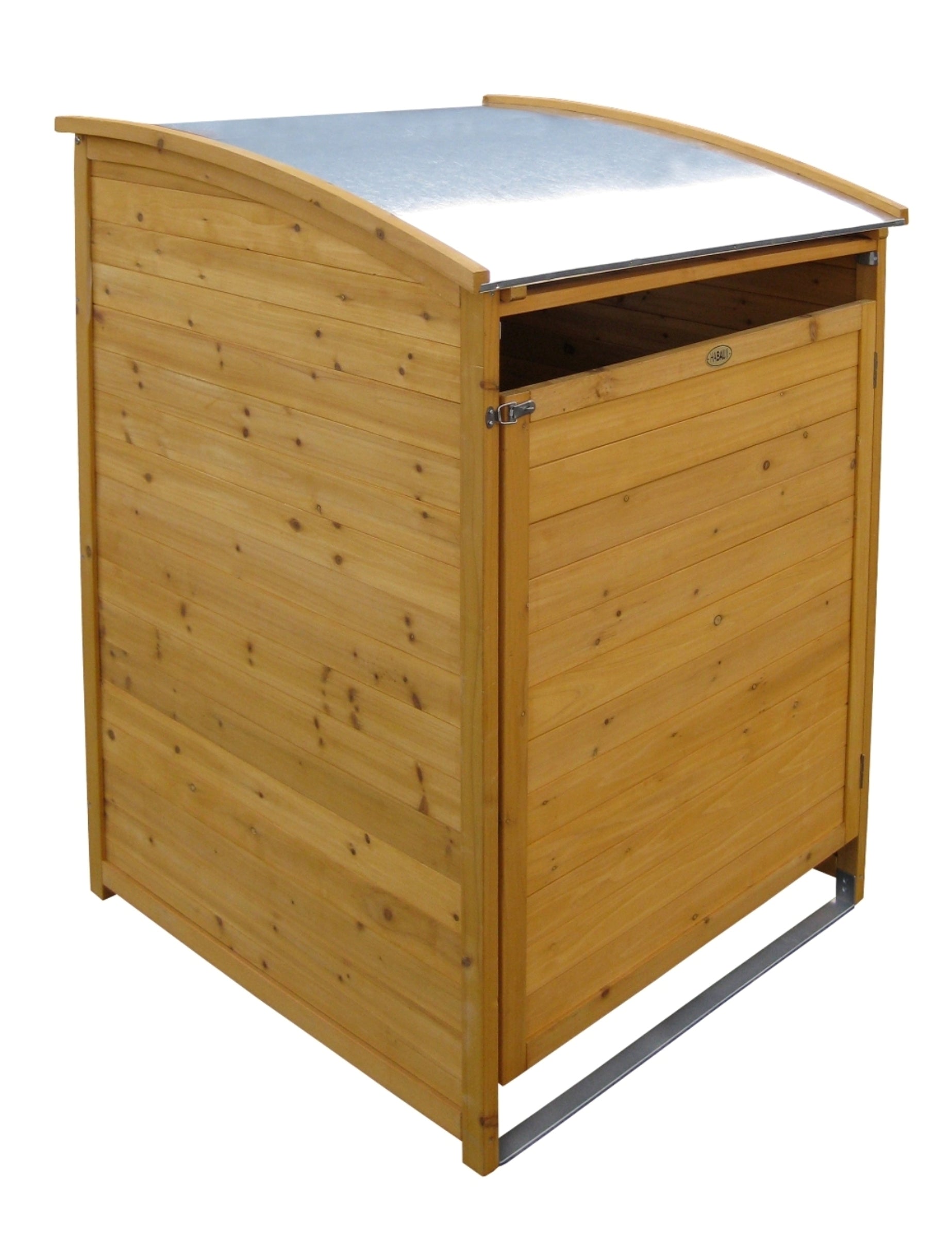 Die Mülltonnenbox PLUS von HABAU kann zur ansprechenden Verkleidung sämtlicher Mülltonnen bis 120 Liter Fassungsvermögen eingesetzt werden. So verschwinden Ihre Mülltonnen hinter einer schönen Holzfassade! Die Maße sind speziell für Mülltonnen mit 120 Litern Fassungsvermögen ausgerichtet. 240 Liter Mülltonnen passen nicht in die Verkleidung. Die Verkleidung besteht vollständig aus Holz, zudem ist das Dach verzinkt, um besondere Langlebigkeit zu gewährleisten. Das Wasser kann über das geneigte Zinkdach abfließen, ohne direkt ins Holz einzudringen. Die Metallschiene am Boden sorgt für zusätzliche Stabilität der gesamten Verkleidung. Die Verkleidung ist so auch bei seitlichem Wind sehr stabil. Über die Schiene kann die Mülltonnenbox auch mit dem Boden verankert werden.