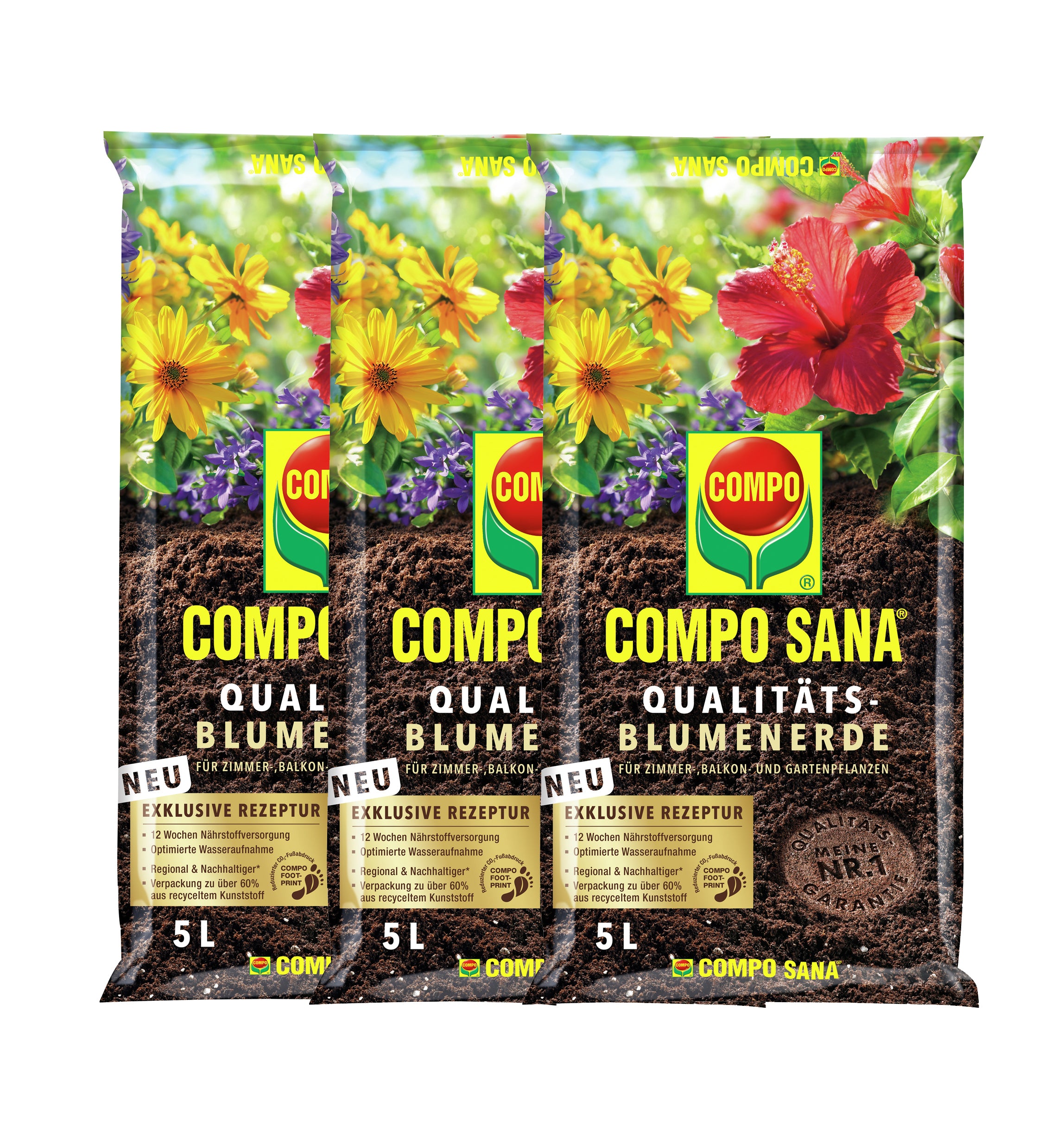 Compo Qualitäts Blumenerde 3 x 5 L Sana