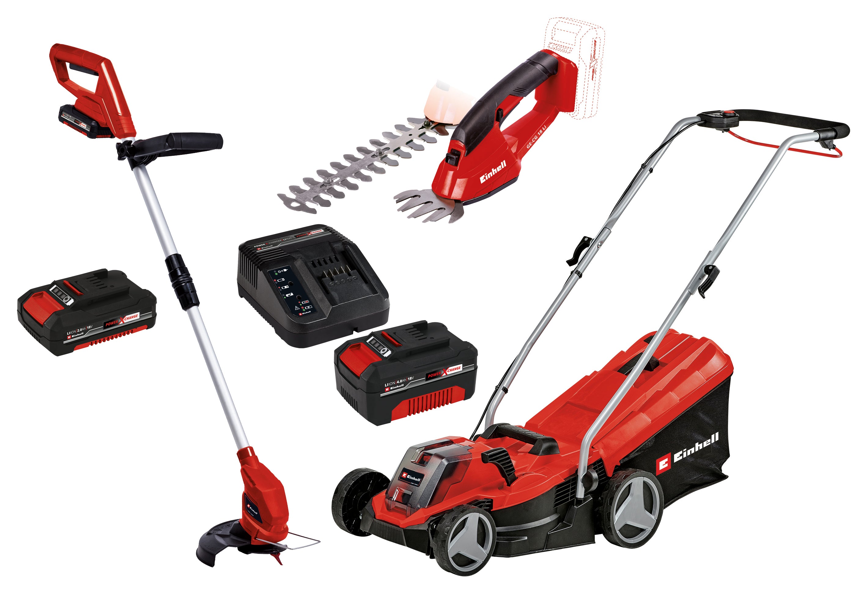 Rasenmäher mit Gras- Strauchschere und Rasentrimmer XL Gartenset