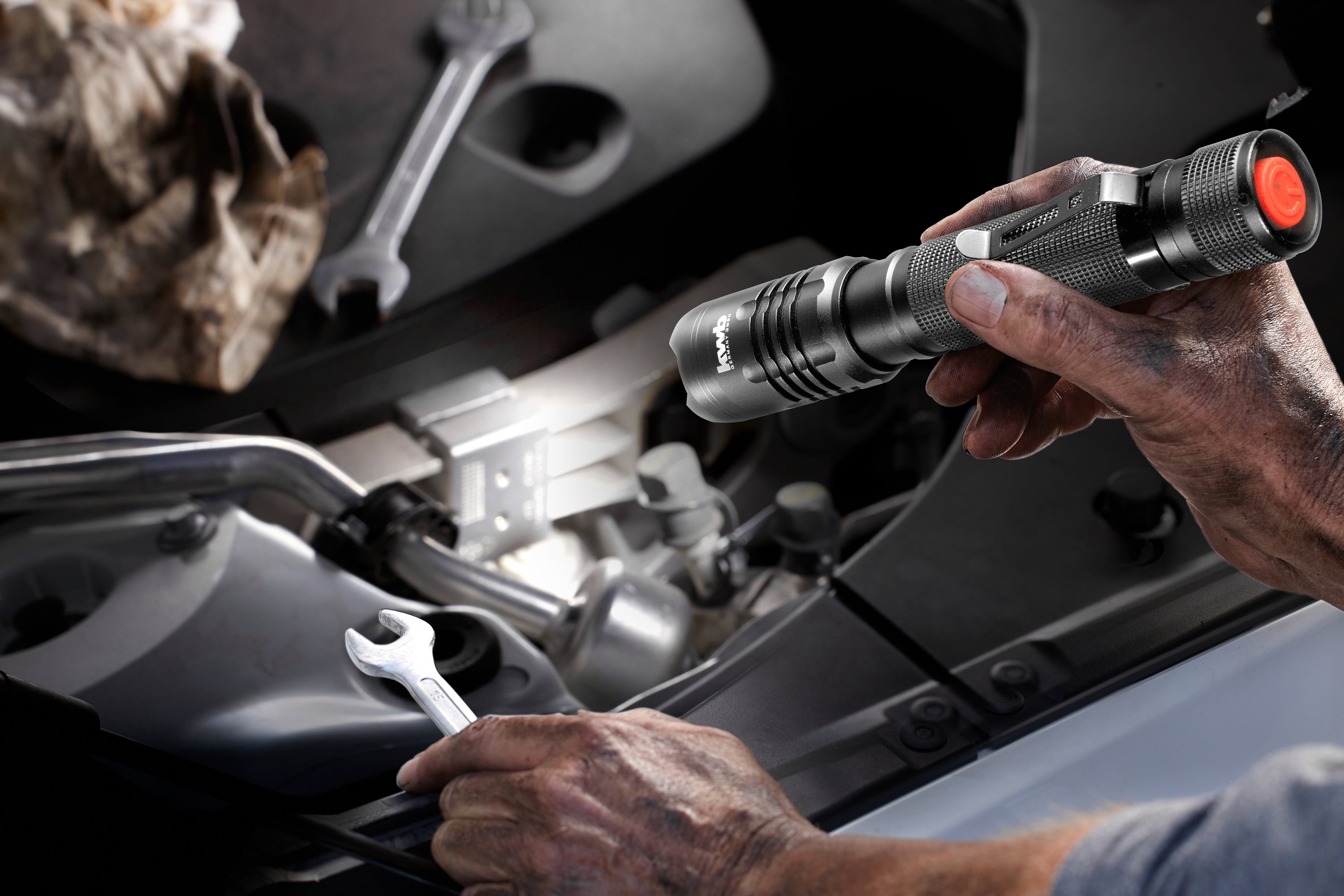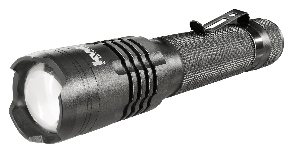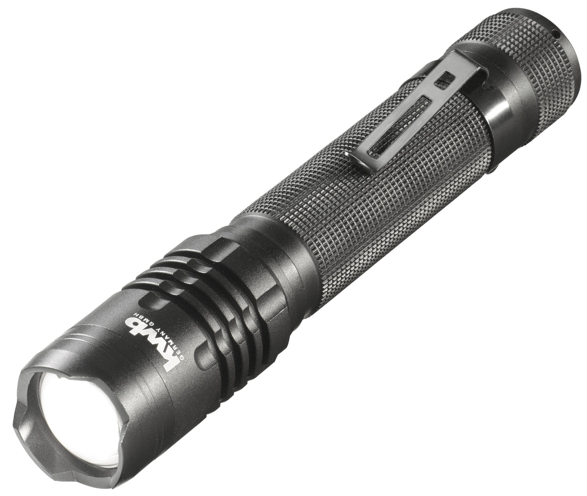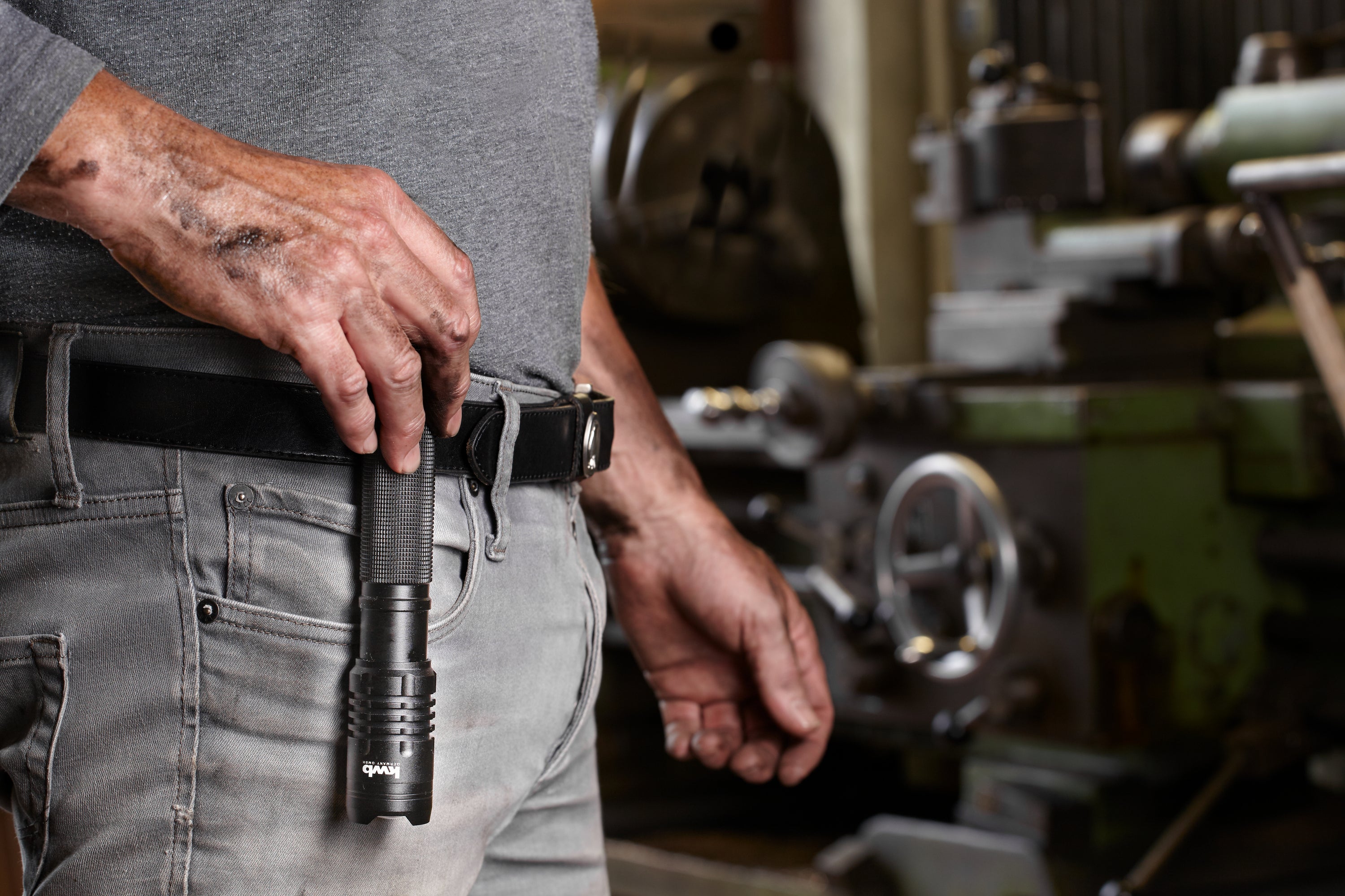 Die kwb LED-Taschenlampe ist überall nutzbar. Zwei Lichtmodi mit bis zu 835 Lumen Lichtstrom sorgen für angepasstes Licht je nach Arbeitsumfeld. Für helles Flächenlicht oder Punktbeleuchtung ohne Hotspot-Bildung verfügt die kwb LED-Taschenlampe über eine stufenlose Zoom-Funktion. Das Leuchtmittel ist nach ANSI-FL-Standard geprüft. Sechs 1,5-V-AAA-Batterien sorgen für die ausreichende Spannungsversorgung (im Lieferumfang). Das Gehäuse besteht aus stoßfestem Aluminium und übersteht Stürze aus 1 Meter Höhe. Eine großflächige und rutschfeste Oberflächentextierung ermöglicht ein sicheres Halten und Greifen - auch mit Handschuhen. Durch den integrierten Clip lässt sich die kwb LED-Taschenlampe an Taschen und Arbeitskleidung befestigen.