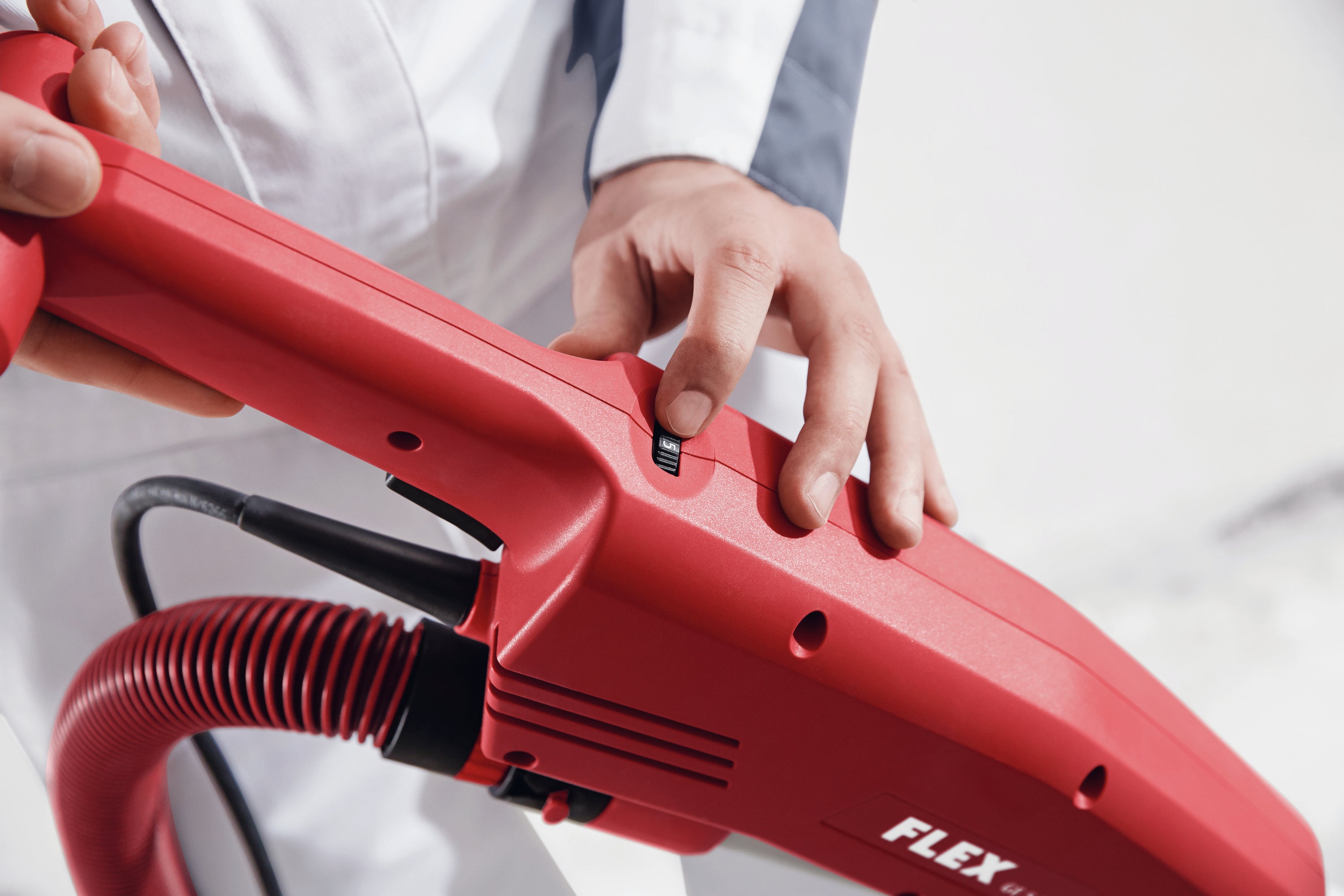 Lieferumfang: 1 Klett-Schleifteller supersoft, 1 Clip-Schnellspannring SH-FC 32, Antistatik-Saugschlauch 32 mm Ø x 4 m mit Rastanschluss und Anschlussmuffe für Sauger mit Nebenluftregelung, 1 Transporttasche