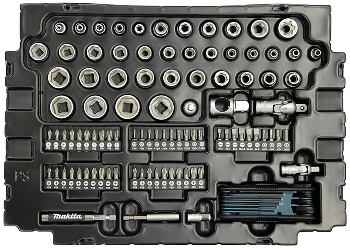 Set Bestehend Aus: 7x Ringmaulschlüssel von 8 - 15 mm 1x Innensechskant-Schlüssel-Set 1.5, 2, 2.5, 3, 4, 5, 6, 8 mm 50x Bits 25 mm: 2x PH0, 2x PH1, 3x PH2, 3x PH3, 2x PZ0, 2x PZ1, 3x PZ2, 3x PZ3 1x SL0.5x3.0, 1x SL0.8x4.0, 1x SL0.8x5.0, 2x SL1.0x5.5 1x SL1.0x6.0, 1x HH3, 1x HH4, 1x HH5, 1x HH6, 1x T8, 1x T9, 1x T10, 2x T15, 1x T20, 1x T25, 1x T27, 1x T30, 1x T40, 1x TH8, 1x TH9, 1x TH10, 2x TH15, 1x TH20, 1x TH25, 1x TH27, 1x TH30. 1x TH40 1x Bithalter 60 mm magnetisch 1x Schraubführungshülse 80 mm magnetisch 1x Adapter 1/4“ Sechskant auf 1/4“ Vierkant 1x Adapter 1/4“ Sechskant auf 1/2“ Vierkant 1x Adapter 1/4“ Vierkant auf 1/4“ Sechskant 18x Steckschlüsseleinsätze 1/4“: je 1x 4, 4.5, 5, 5.5, 6, 7, 8, 9, 10, 11, 12, 13, 14 mm je 1x E4, E5, E6, E7, E8 2x Verlängerung 1/4“ 50 mm, 100 mm 1x Kardangelenk 1/4“ 1x Schraubendreher mit 1/4“ Vierkant 20x Steckschlüsseleinsätze 3/8“: je 1x 8, 9, 10, 11, 12, 13, 14, 15, 16, 17, 18, 19, 20, 21 mm je 1x E10, E11, E12, E14, E16, E18 1x Ratsche 3/8“ – 72-fach verzahnt 2x Verlängerung 3/8“ 75 mm, 150 mm 1x Adapter 3/8“ Vierkant auf 1/4“ Vierkant 1x Adapter 3/8“ Vierkant auf 1/2“ Vierkant 1x Kardangelenk 3/8“ 2x Zündkerzen-Steckschlüssel-Einsätze (1x 16, 1x 21 mm)