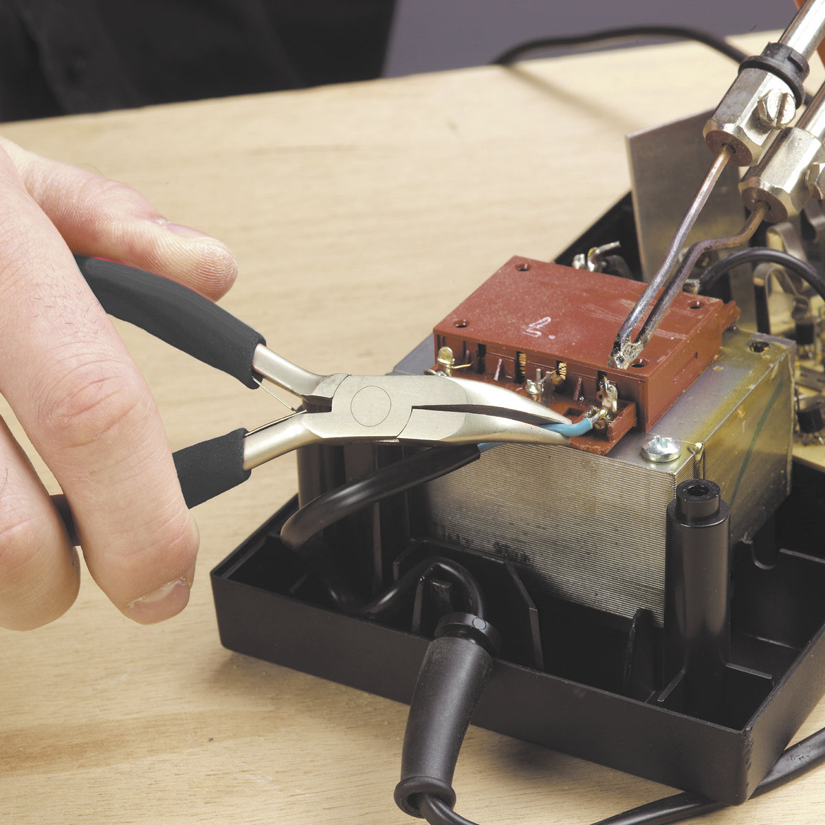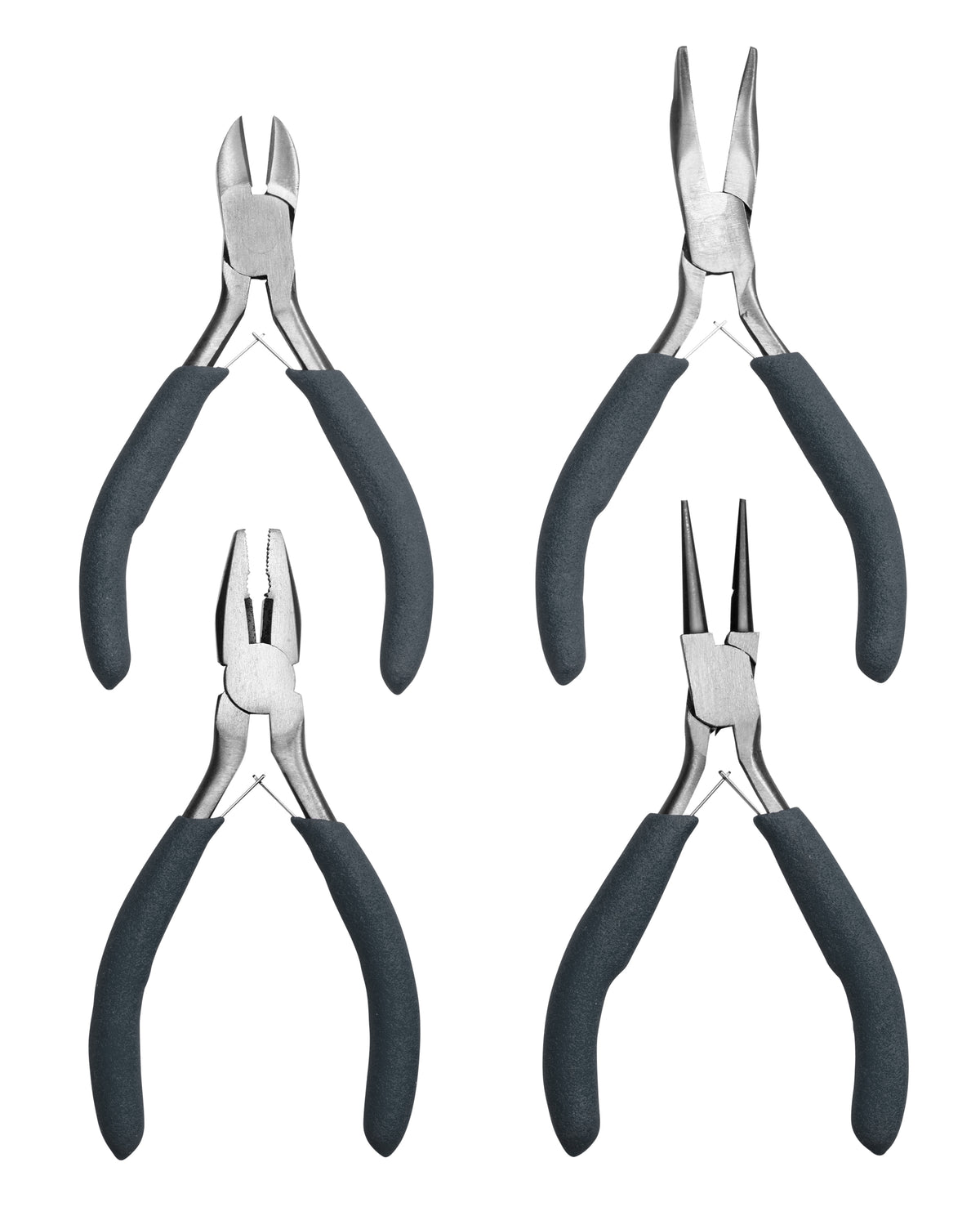 Set Bestehend Aus: Elektronik-Telefonzange gebogen 120 mm, Elektronik-Feinmechanikerzange 120 mm, Elektronik-Rundzange 120 mm, Elektronik-Seitenschneider 110 mm für Kupferdraht max, Ø 1,5 mm